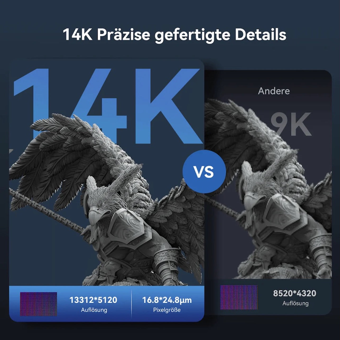 • 14K LCD mit 13.312 × 5.120 px: Ultrafine Details bei jedem Druck