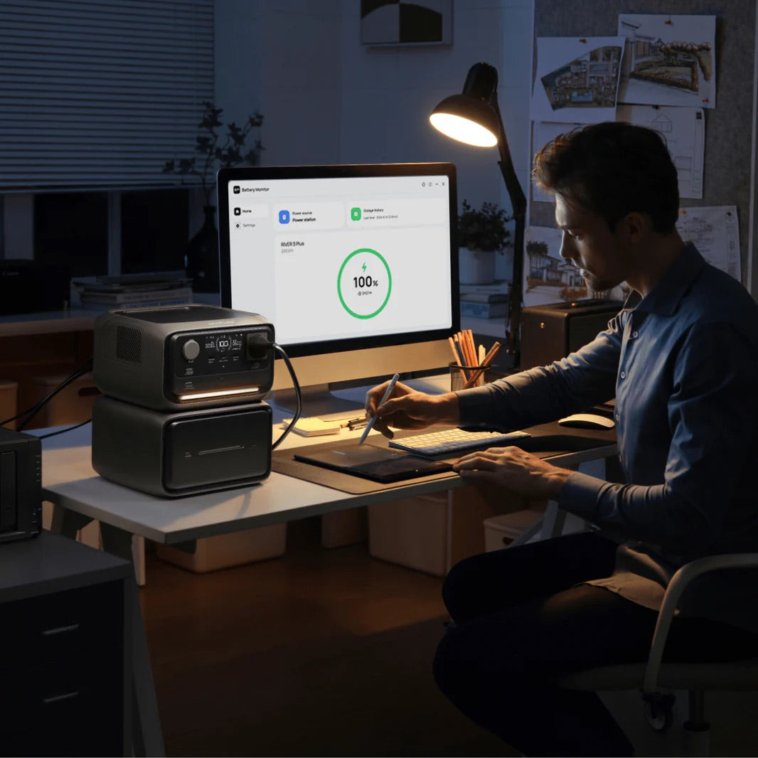 Die RIVER 3 Plus ist ein Kraftpaket unter den kompakten Powerstations und liefert bis zu 600 W Nennleistung. Dank der X-Boost-Technologie kann sie problemlos 1 200 W Heizgeräte dauerhaft versorgen, sodass 90 % der Haushaltsgeräte einwandfrei weiterlaufen. Ein extra eingebautes Licht sorgt dafür, dass Sie nie im Dunkeln stehen. Steigern Sie Ihre Energieversorgung mit RIVER 3 Plus Max 858 Wh. Diese Kombination besteht aus einer River 3 Plus Powerstation mit 286 Wh und einer Zusatzbatterie EB600 mit 572 Wh.