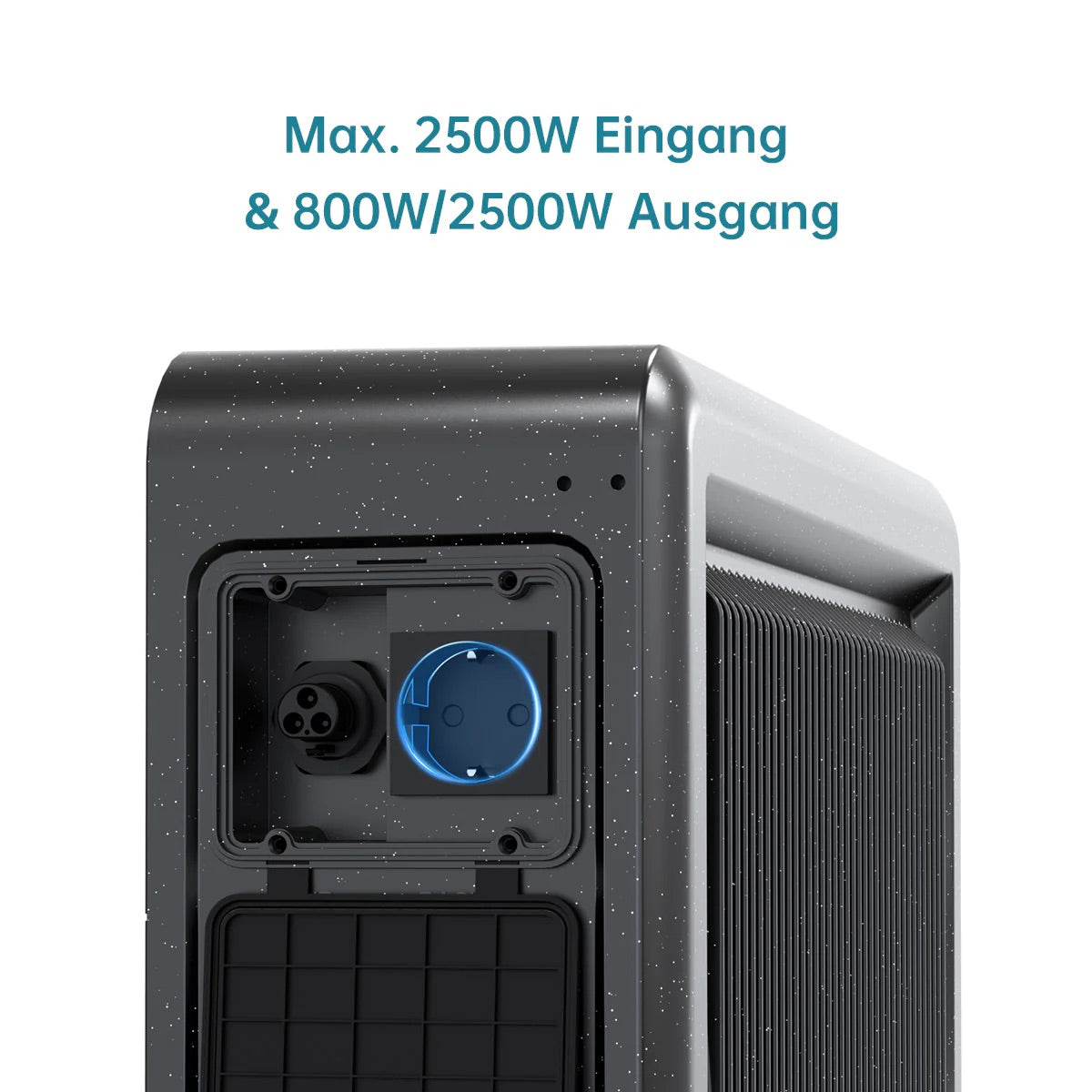 • 2,5 kW AC Ein- & Ausgangsleistung, inklusive Backup-Modus bei Stromausfall