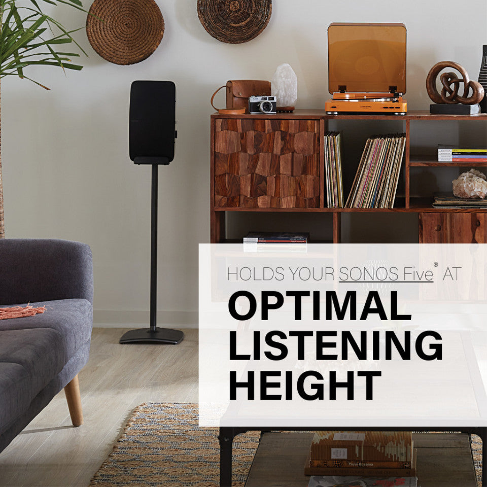 Der Sanus Standfuß für Sonos Five dient dazu, den Lautsprecher stabil und sicher zu positionieren. Er erfüllt eine ästhetische Funktion und bringt den Lautsprecher auf die richtige Höhe.